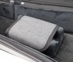 -Plush velveteen interior with padded adjustable base and padded adjustable and securable neck support