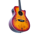 When the wood blends of the Burl ACE are coupled with the size, shaping, and bracing of this auditorium cutaway, you enjoy clear articulation and a versatile tone.